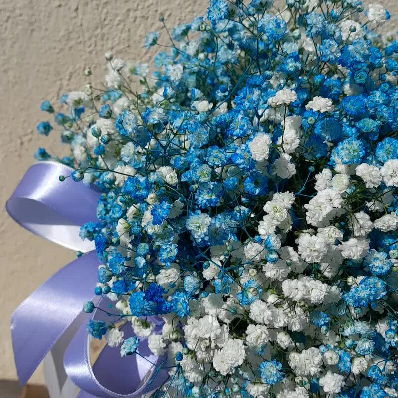 Гипсофила – 9 шт.Лента атласная – 2 шт.Кашпо – 1 шт.Упаковка дизайнерская – 2 шт.Оазис флористический – 1 шт.