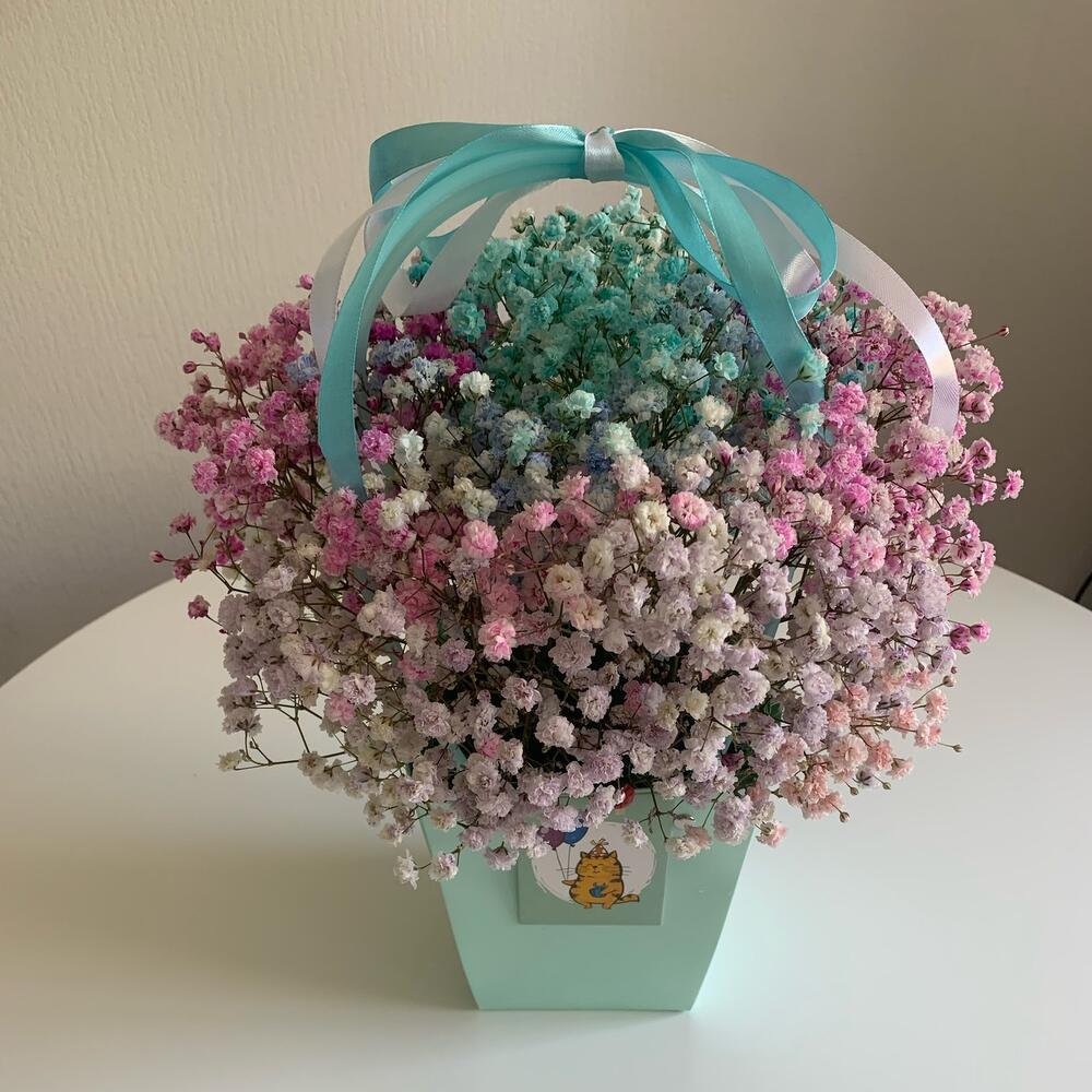 Гипсофила – 7 шт.Оазис флористический – 1 шт.Лента атласная – 2 шт.Сумочка картонная – 1 шт.