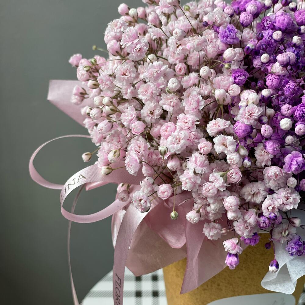 Гипсофила – 3 шт.стакан кофейный – 1 шт.Оазис флористический – 1 шт.Тишью – 2 шт.Лента брендированная – 1 шт.