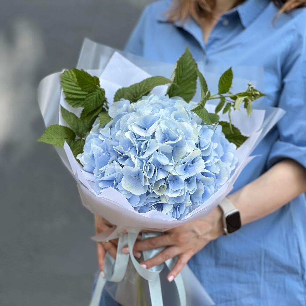 Гортензия – 1 шт.Упаковка дизайнерская – 1 шт.Лента атласная – 1 шт.