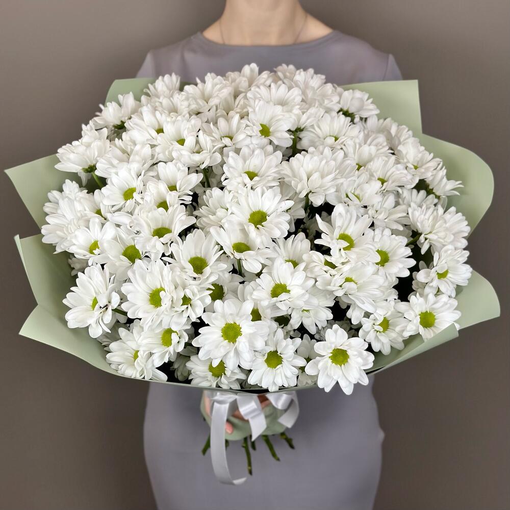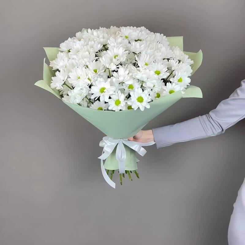 Хризантема кустовая – 15 шт.Лента атласная – 1 шт.Дизайнерская упаковка – 2 шт.