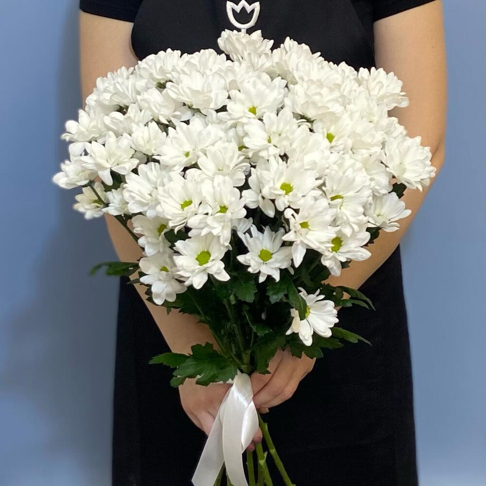 Букет из ромашковой хризантемы, статицы и эвкалипта "Счастье"