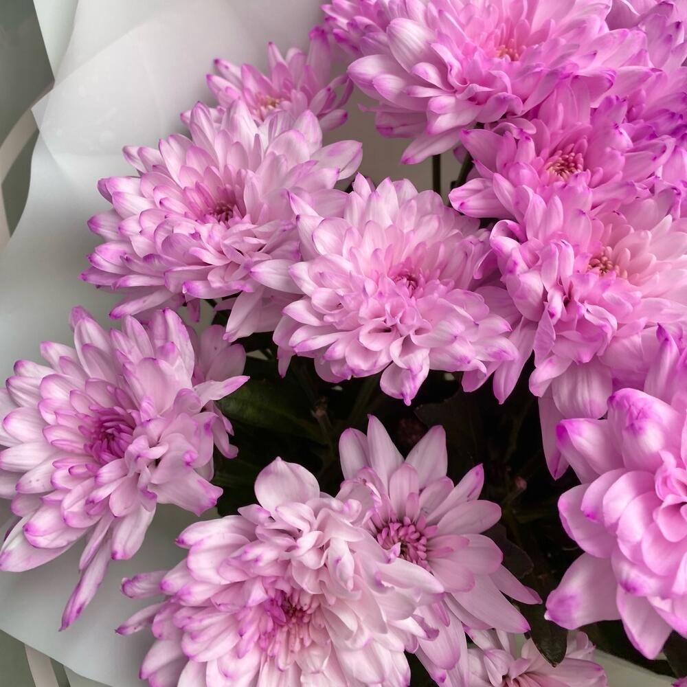 Хризантема кустовая – 5 шт.Лента атласная – 2 шт.Упаковка дизайнерская – 4 шт.