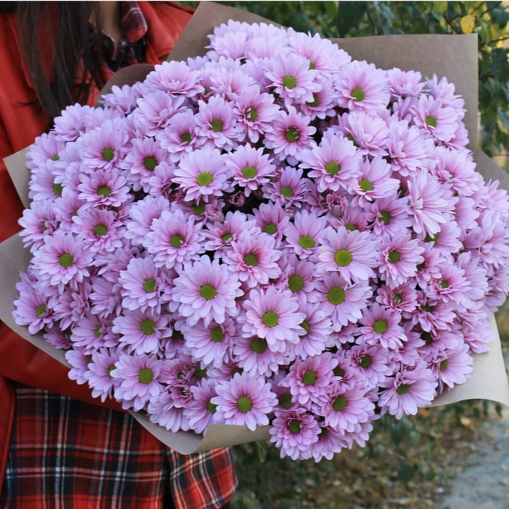 Хризантема кустовая – 15 шт.Крафт – 1 шт.Лента атласная – 1 шт.