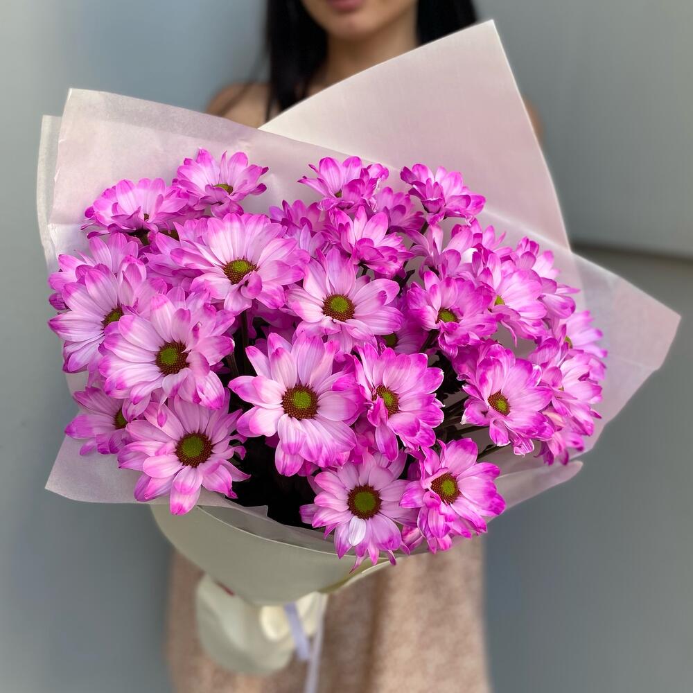 Лента атласная – 2 шт.Тишью – 2 шт.Хризантема кустовая ромашка – 5 шт.Фоамиран (упаковка) – 1 шт.