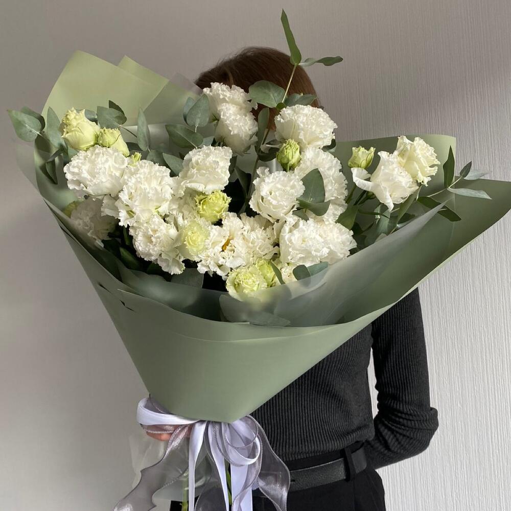 Букет из эустомы и эвкалипта