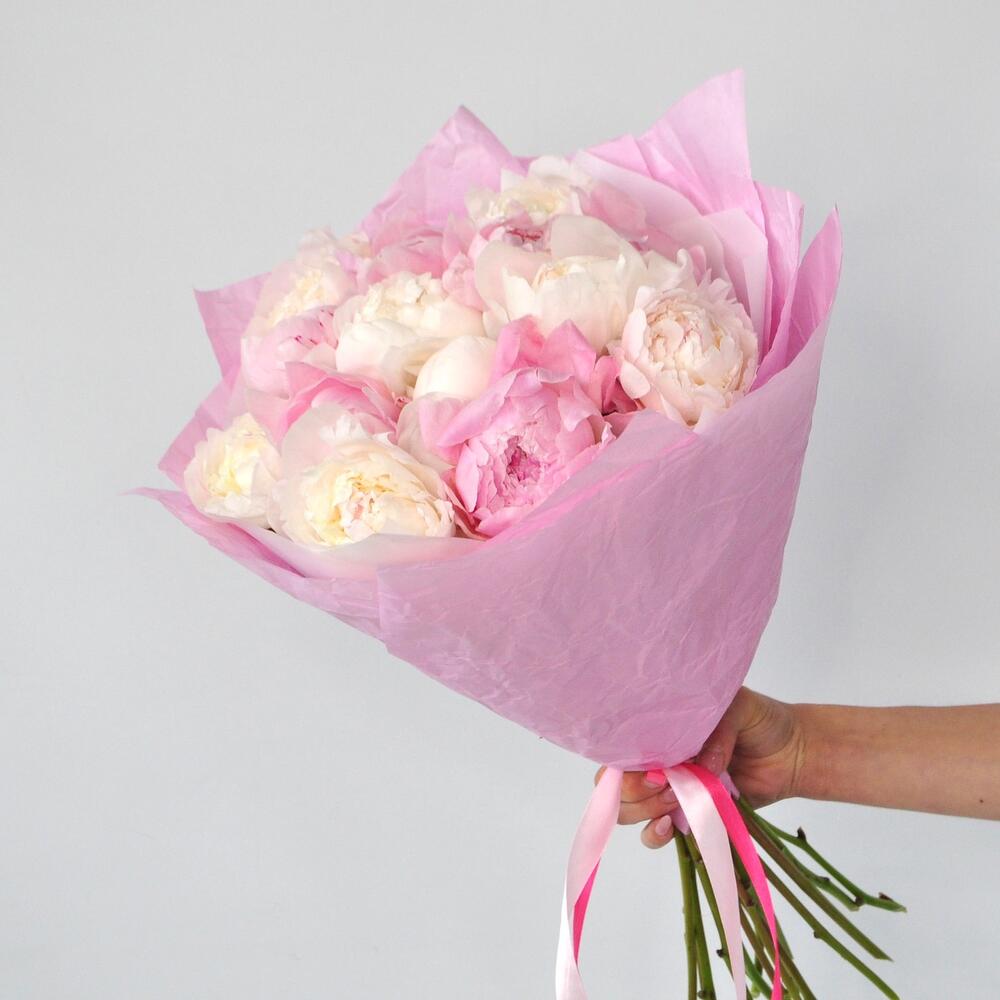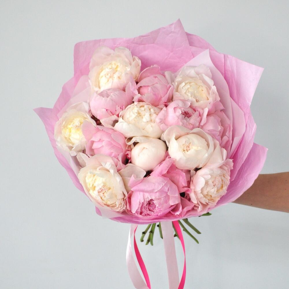 Пион – 15 шт.Лента атласная – 1 шт.Упаковка дизайнерская – 2 шт.