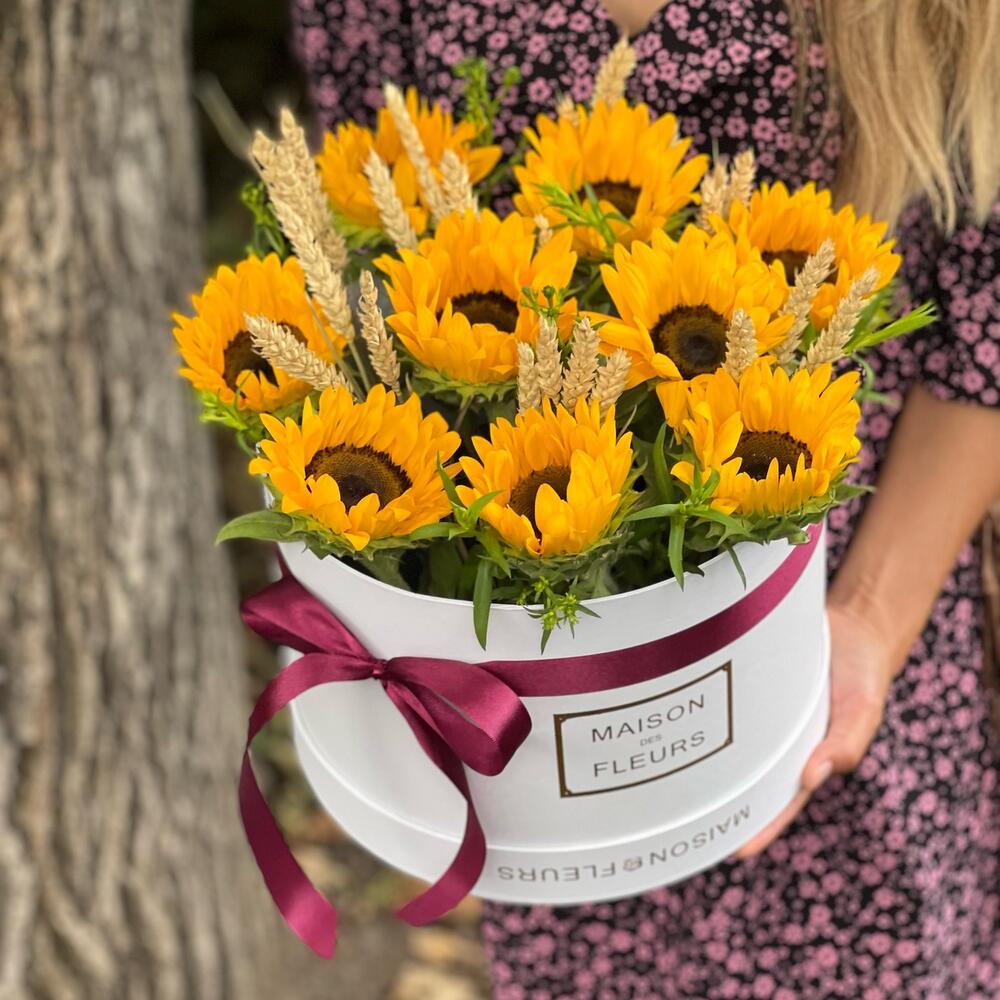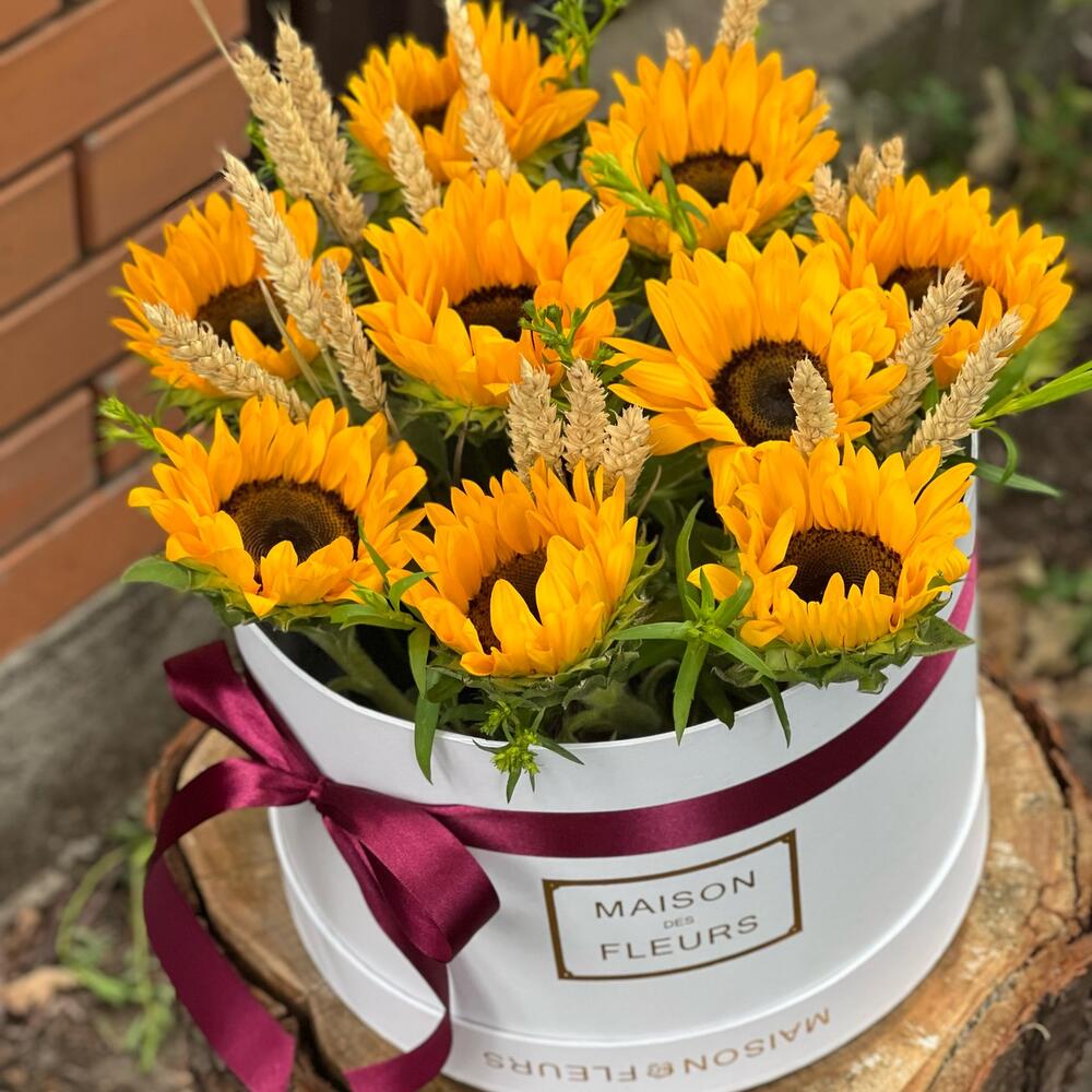 9 подсолнухов в коробке