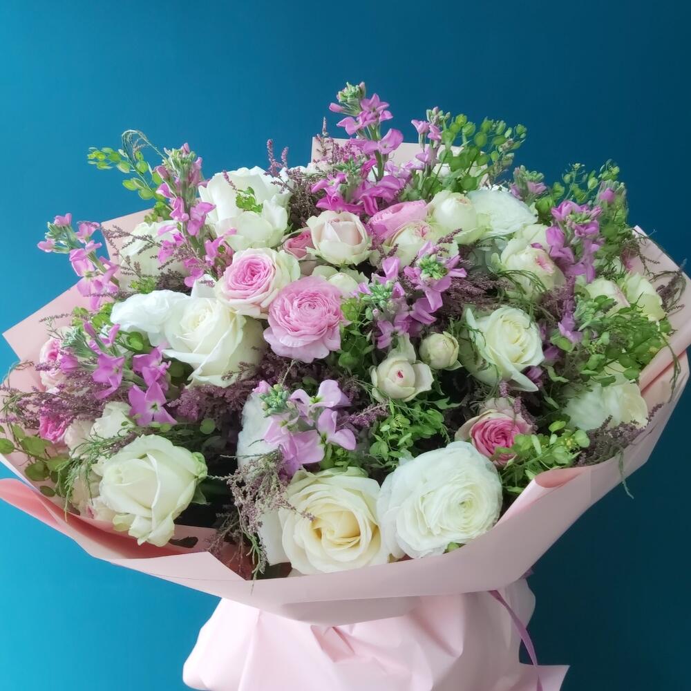 Гвоздики, Кустовые розы, Лизиантусы, Пионовидные розы, Розы