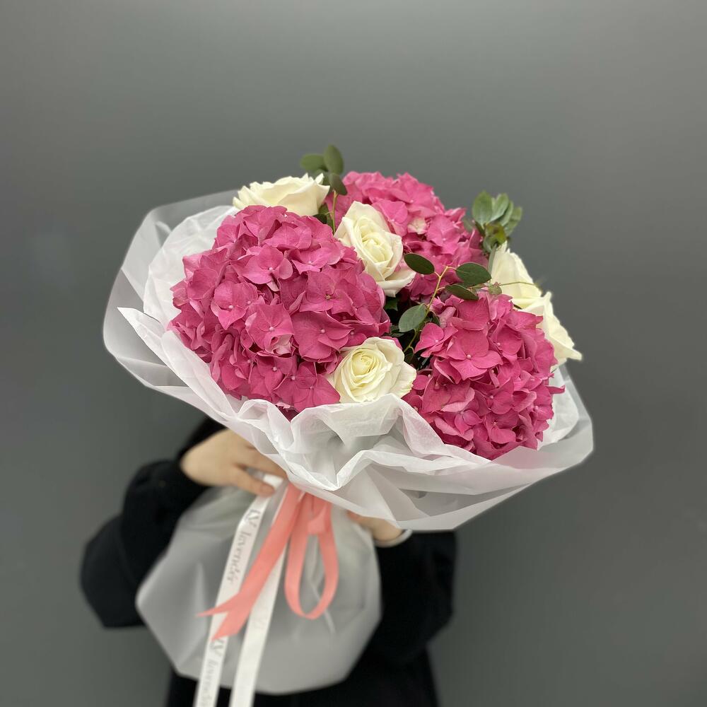 Альстромерии, Кустовые розы, Лизиантусы, Пионовидные розы, Розы, Ромашки