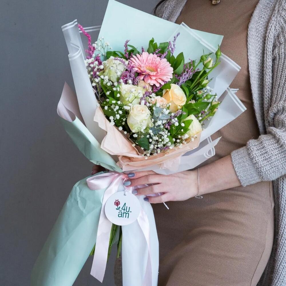 Цветы: кустовые роза, роза, гербера