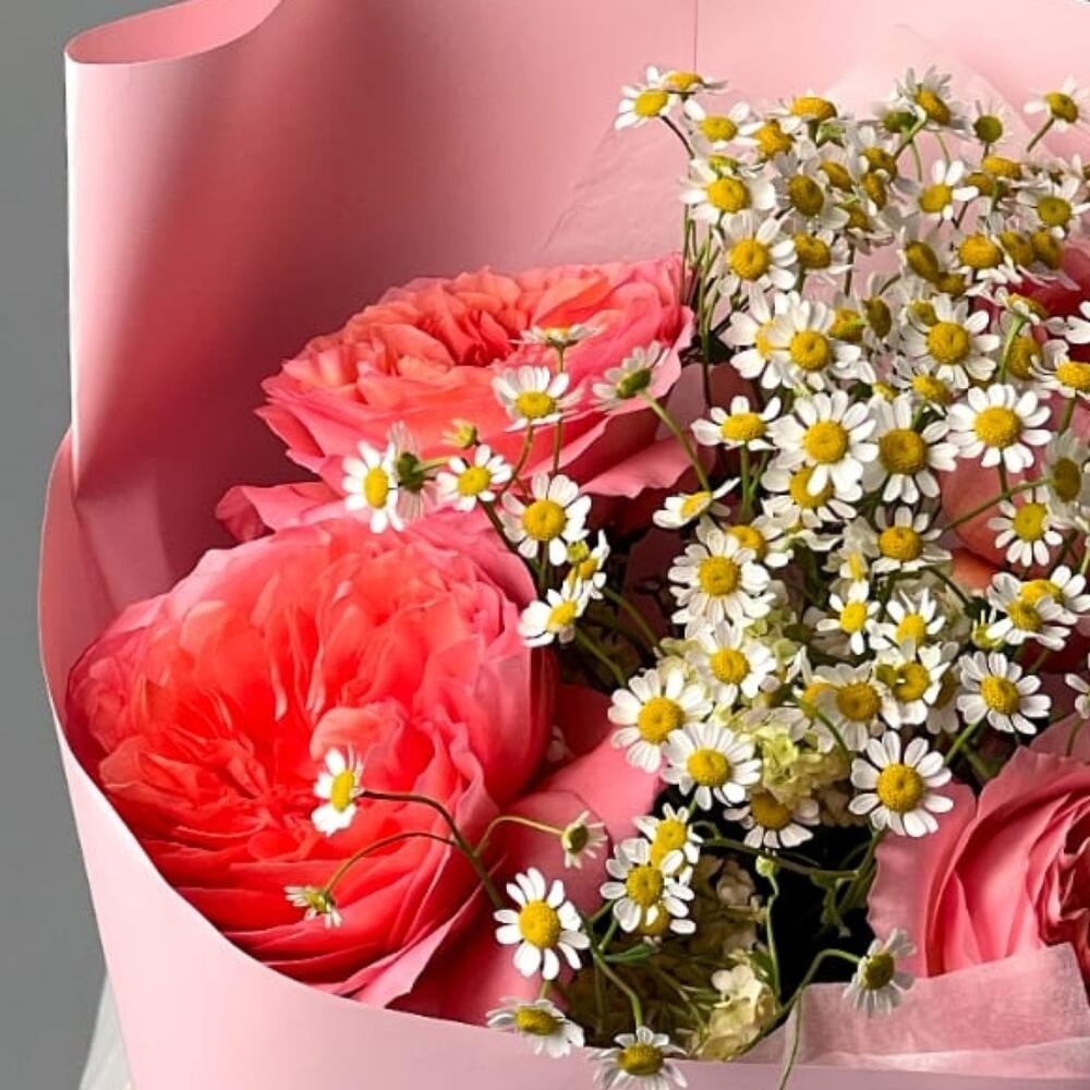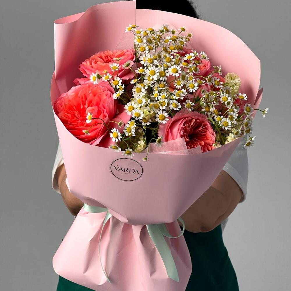 Альстромерии, Кустовые розы, Лизиантусы, Пионовидные розы, Розы, Ромашки