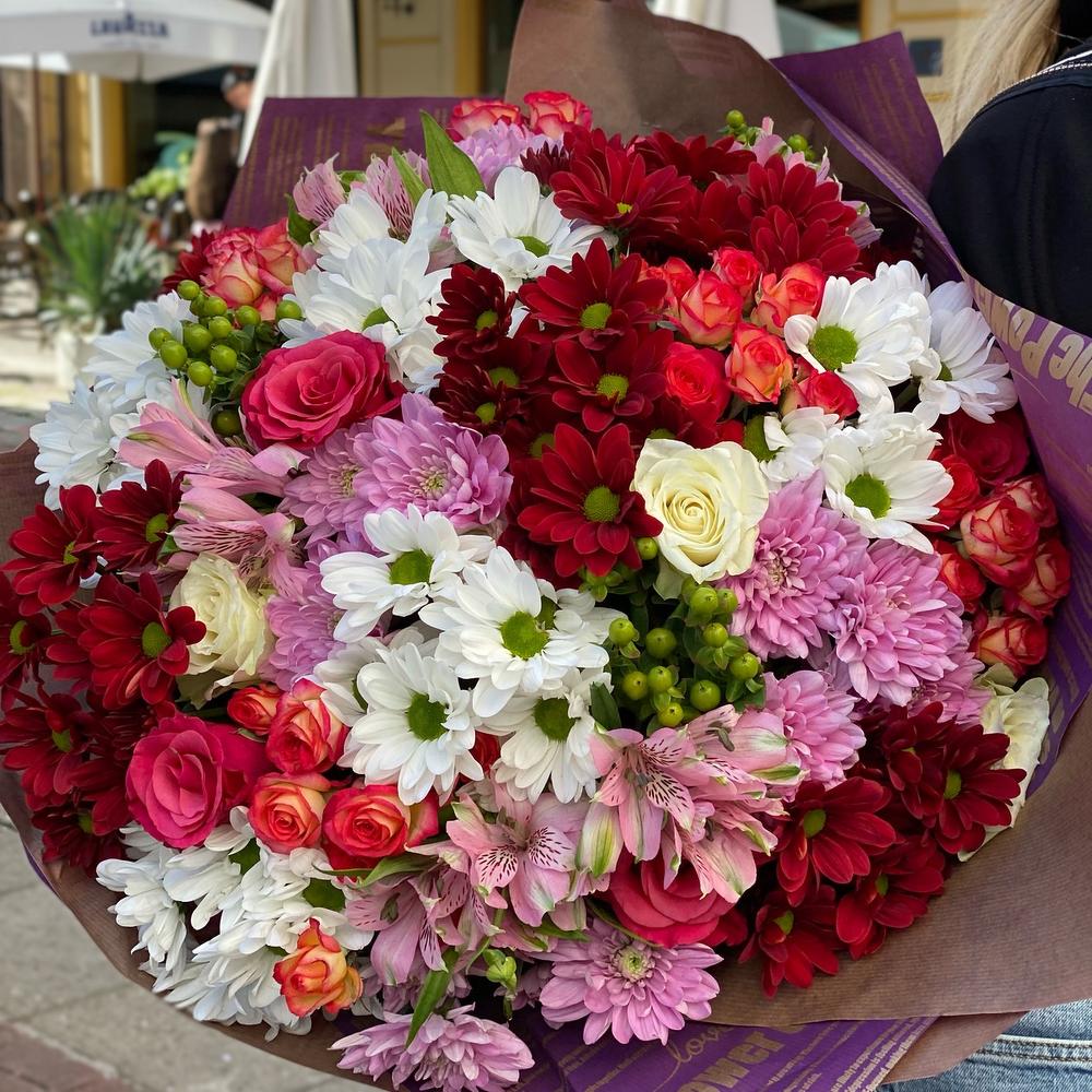 Категорий: Альстромерии, Гиперикум, Розы, Хризантемы, Хризантемы кустовые