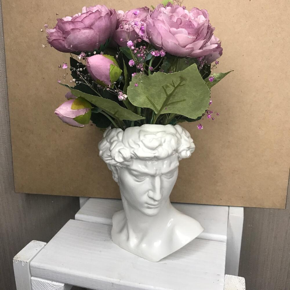 роза искусственная бутон – 5 шт.гипсофила ветка – 1 шт.кашпо гипсовое «давид» – 1 шт.