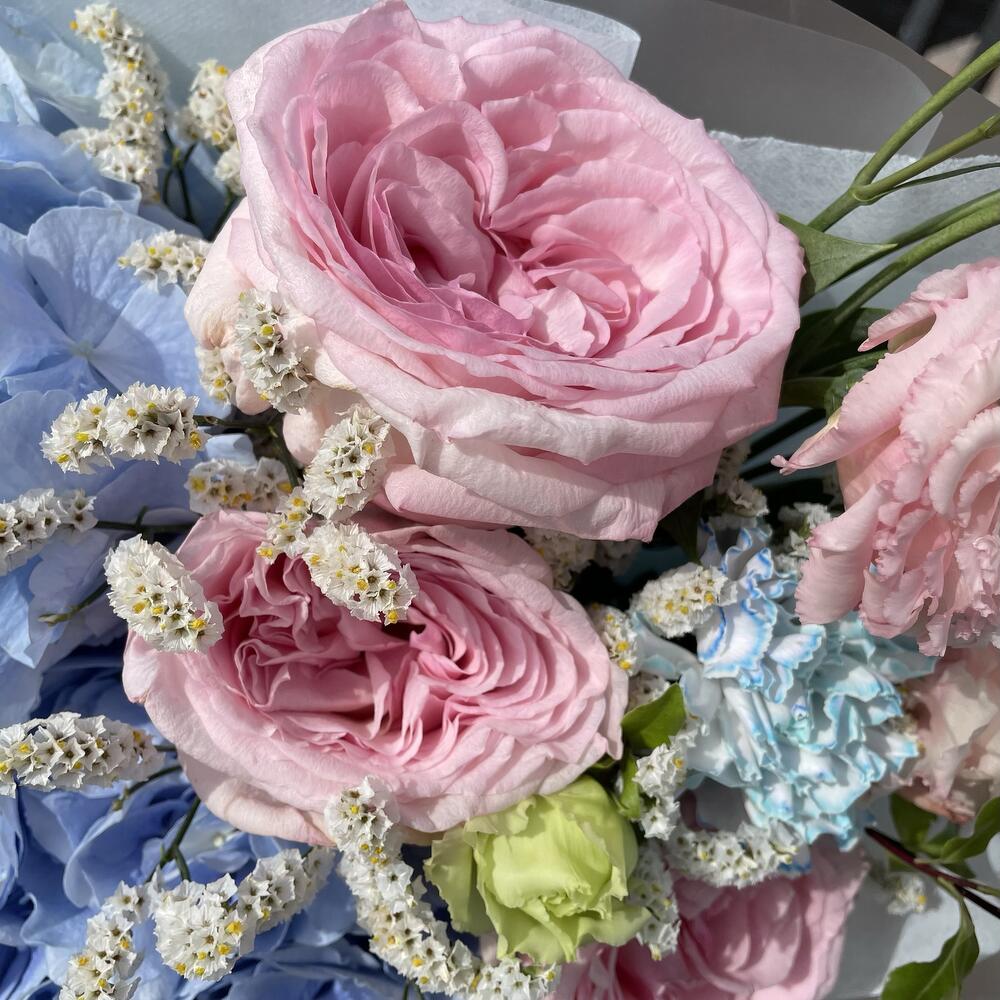 Категорий: Гвоздики, Гортензии, Лизиантусы, Пионовидные розы, Розы