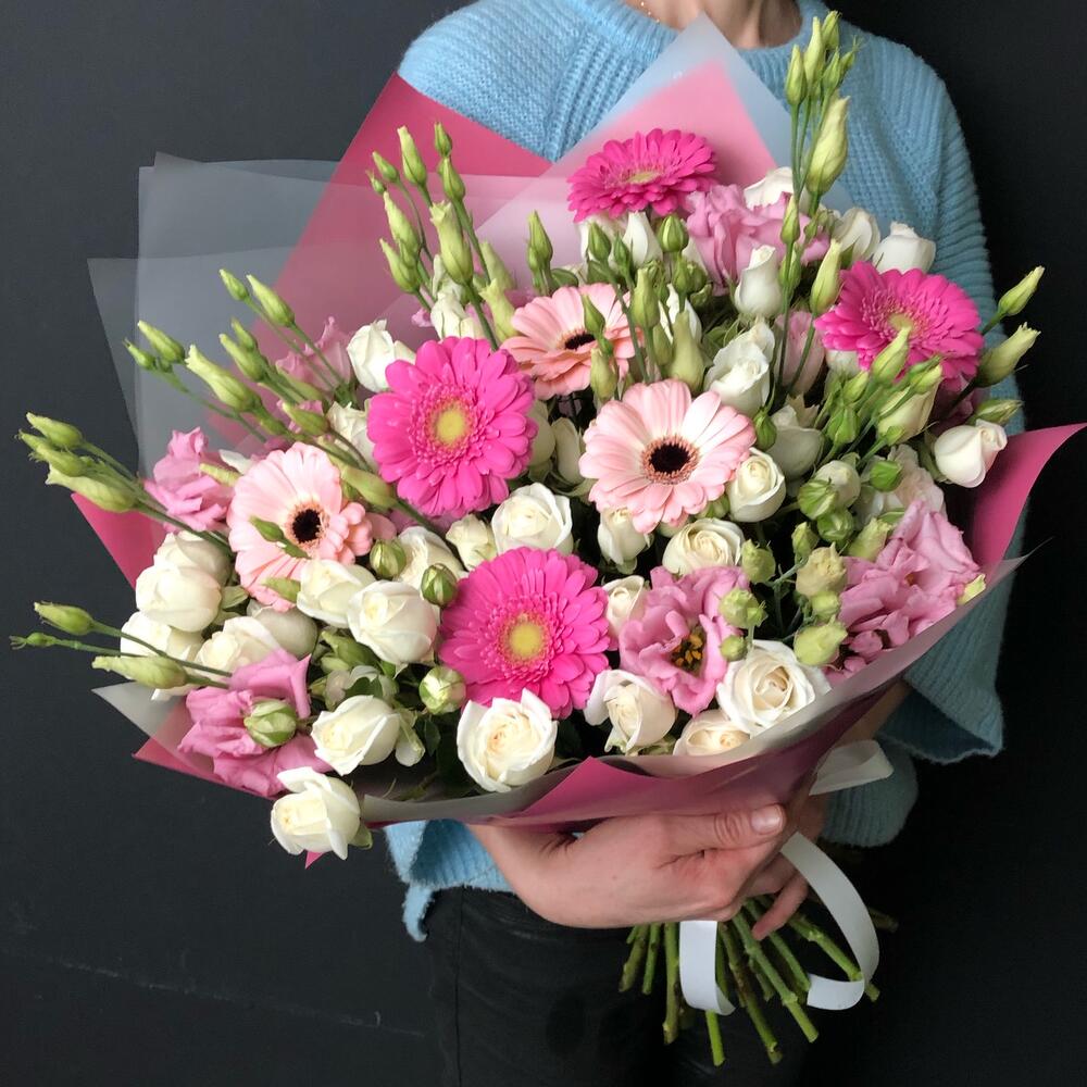 Категории: Герберы, Лизиантусы, Розы