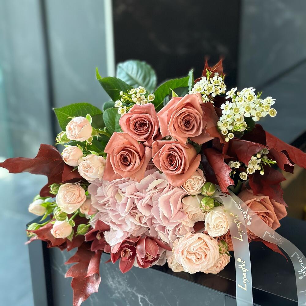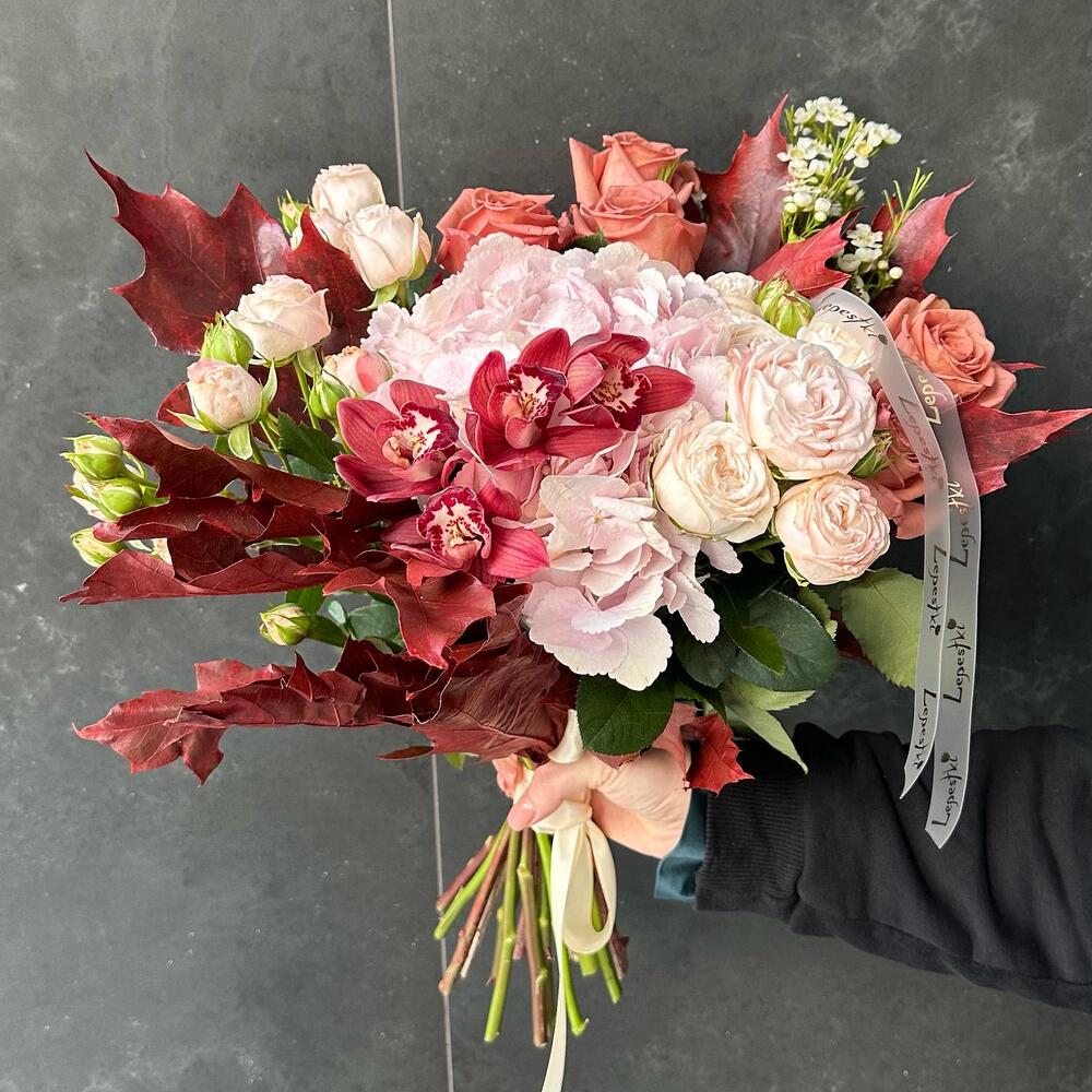 Гортензии, Кустовые розы, Лизиантусы, Пионовидные розы, Розы
